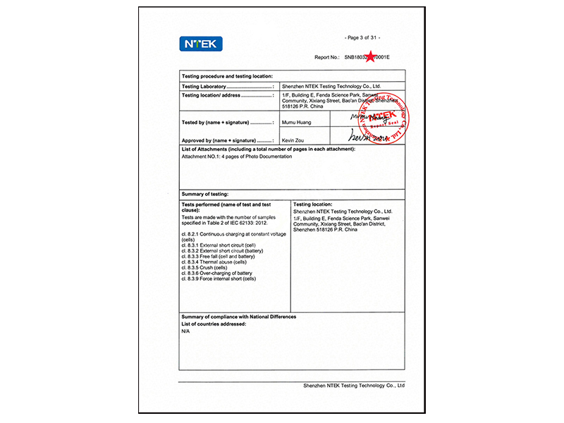 IEC62133報告